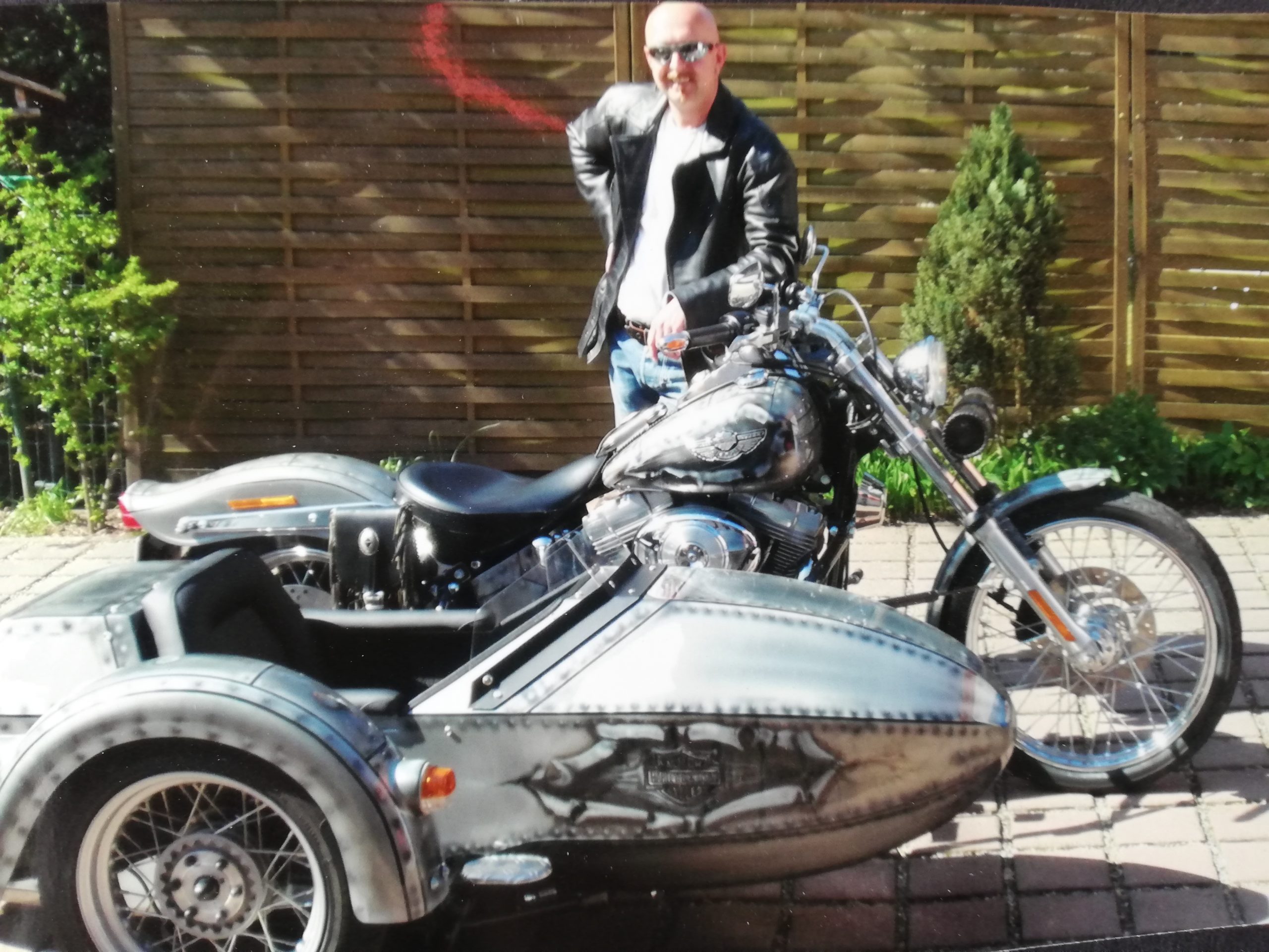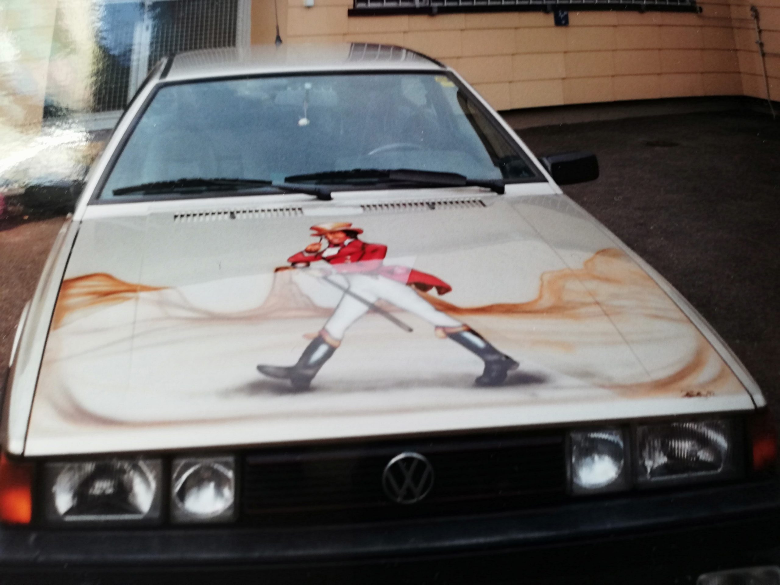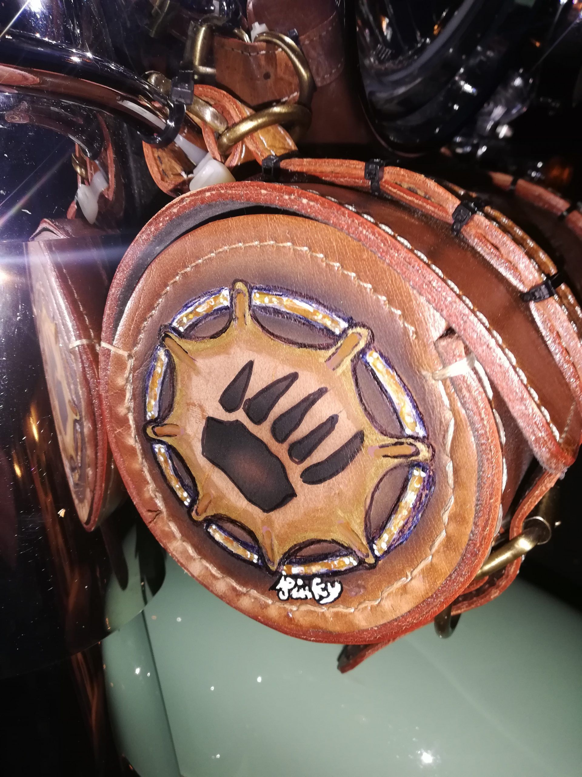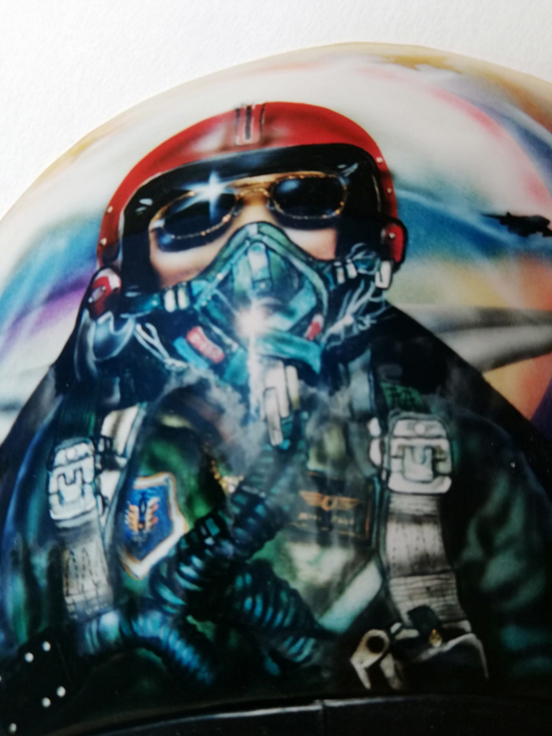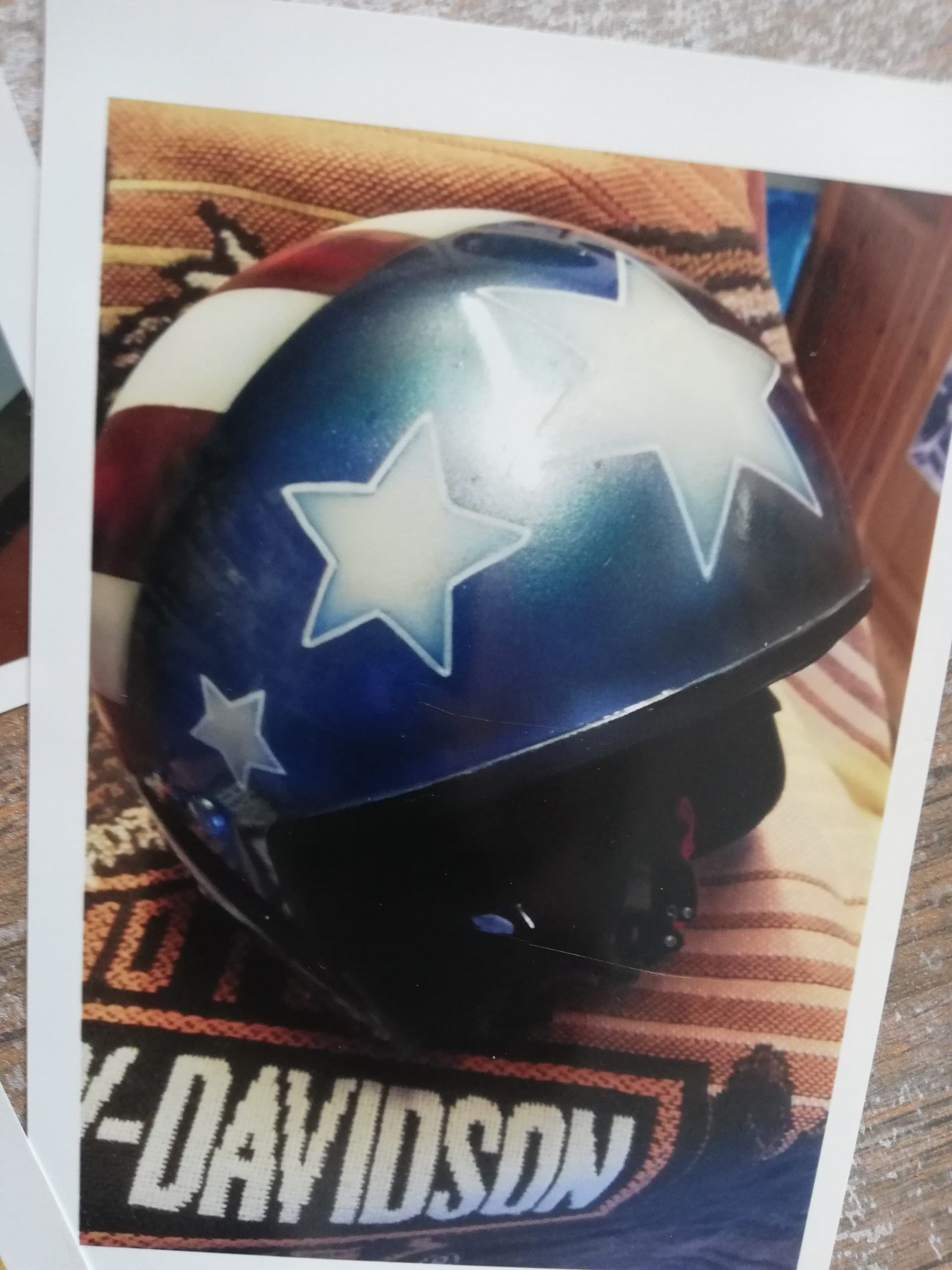 Ein metallgefertigter Motorradtank erscheint mit umbra-brauner Äderung durchzogen mit elfenbeinfarbenem Background als Marmordesign, … oder der Beiwagen eines Kraftrades, aus Epoxid gefertigt, erscheint im alten Kleid der „Tante Ju“ mit Drucknieten versehen in einem geschruppten Aludesign.