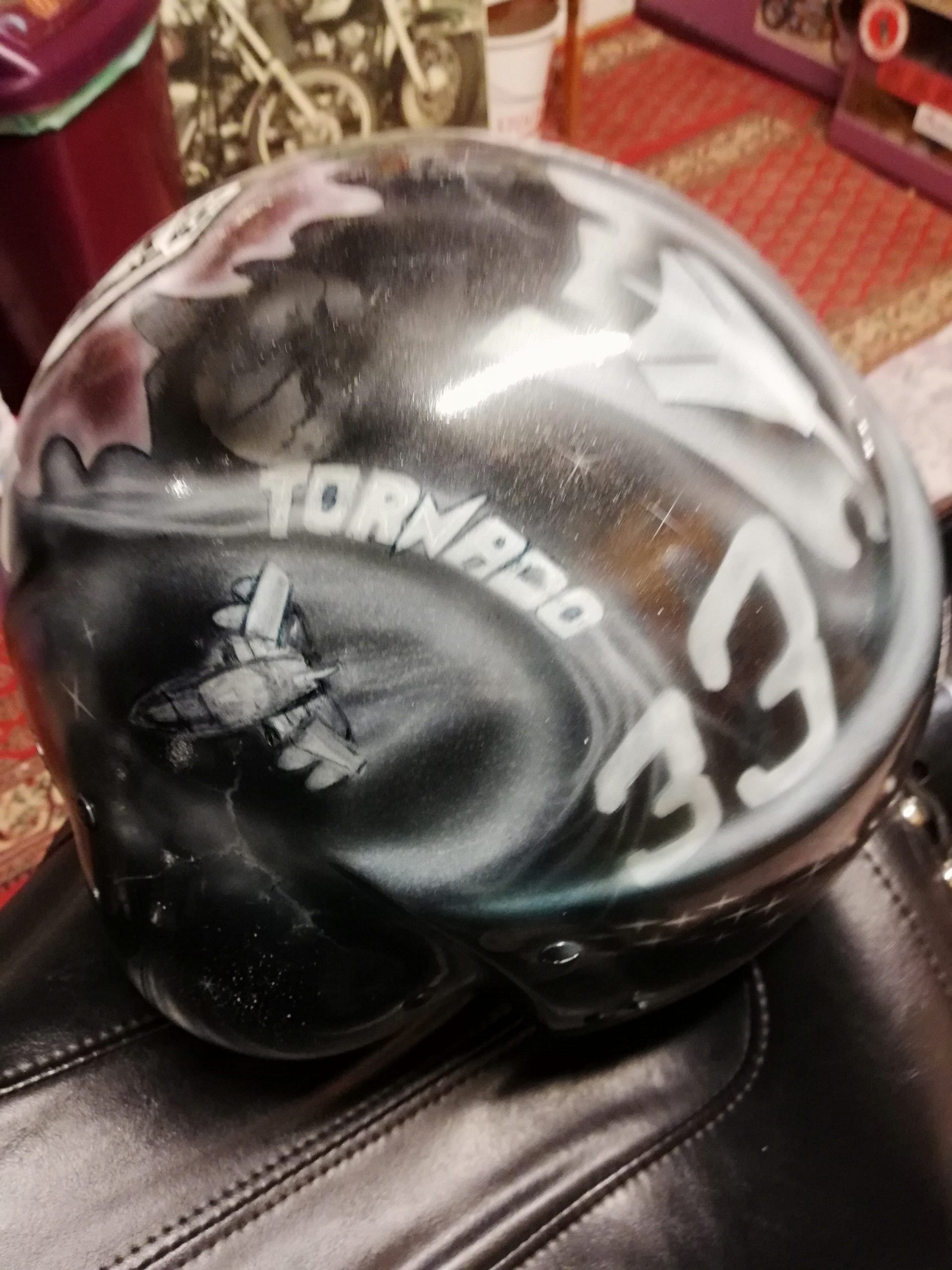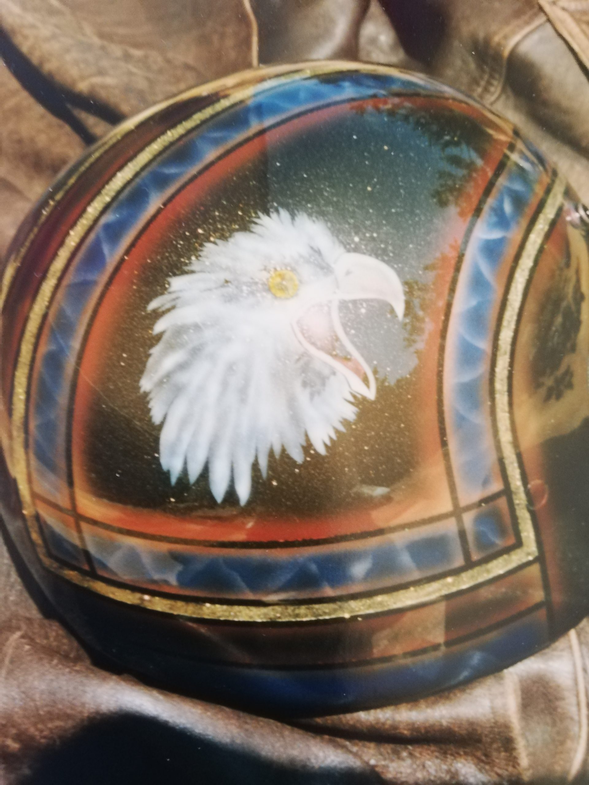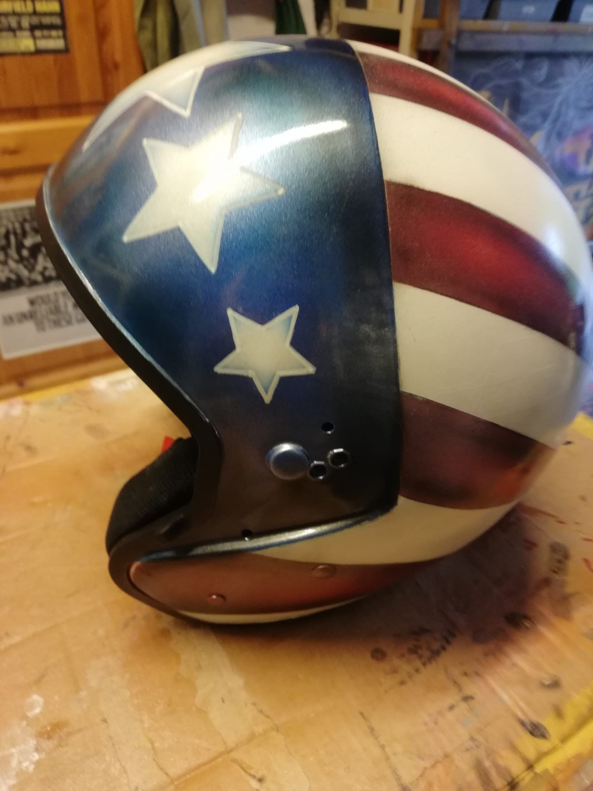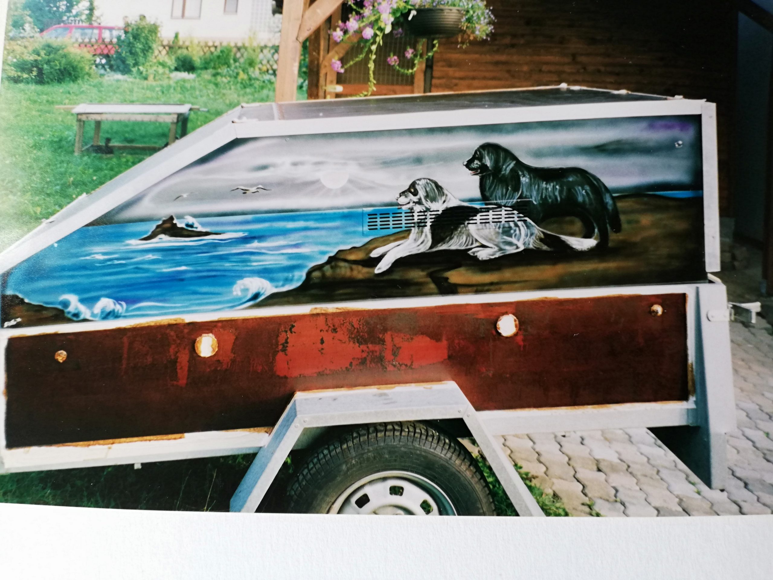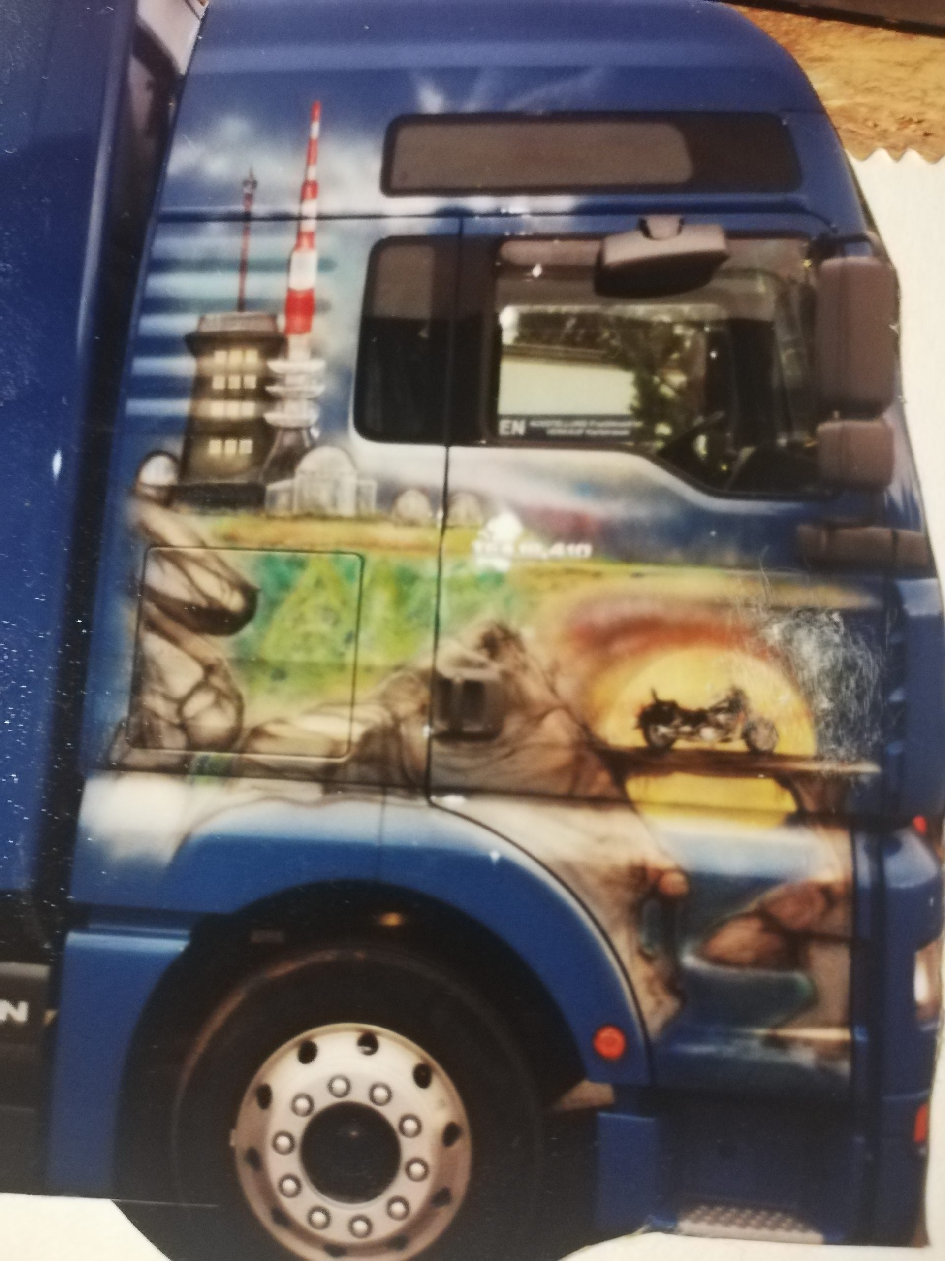 Ein metallgefertigter Motorradtank erscheint mit umbra-brauner Äderung durchzogen mit elfenbeinfarbenem Background als Marmordesign, … oder der Beiwagen eines Kraftrades, aus Epoxid gefertigt, erscheint im alten Kleid der „Tante Ju“ mit Drucknieten versehen in einem geschruppten Aludesign.