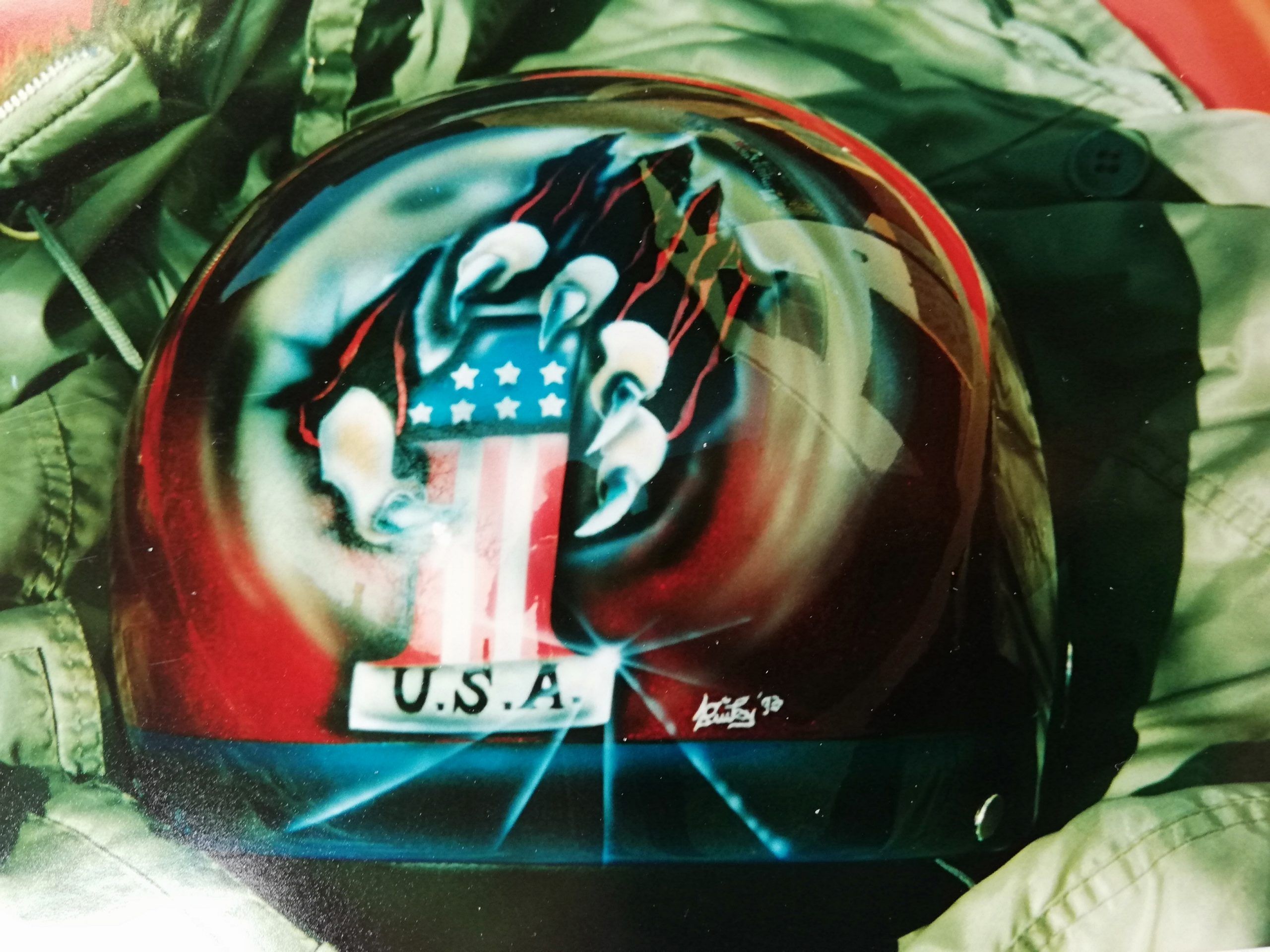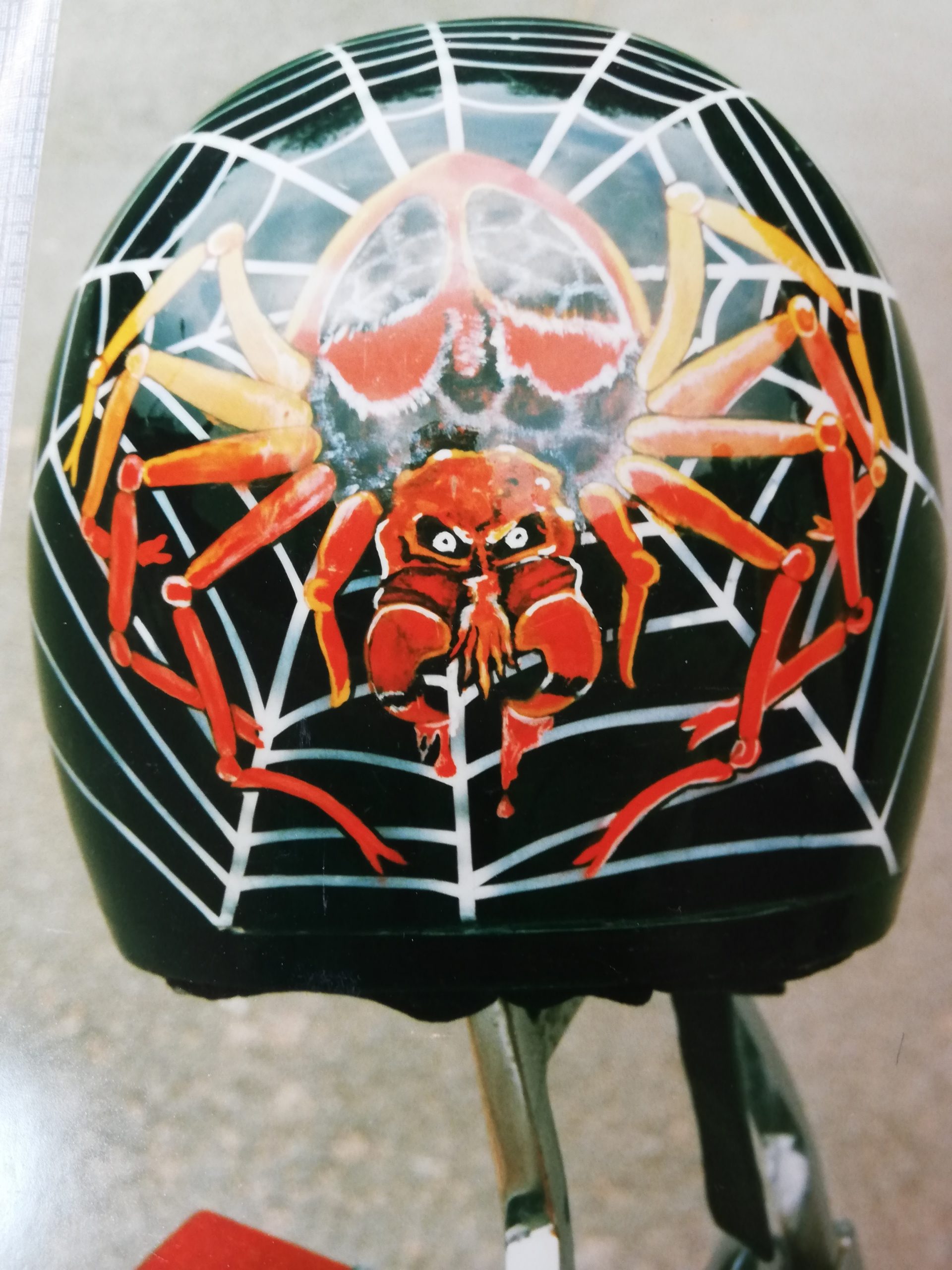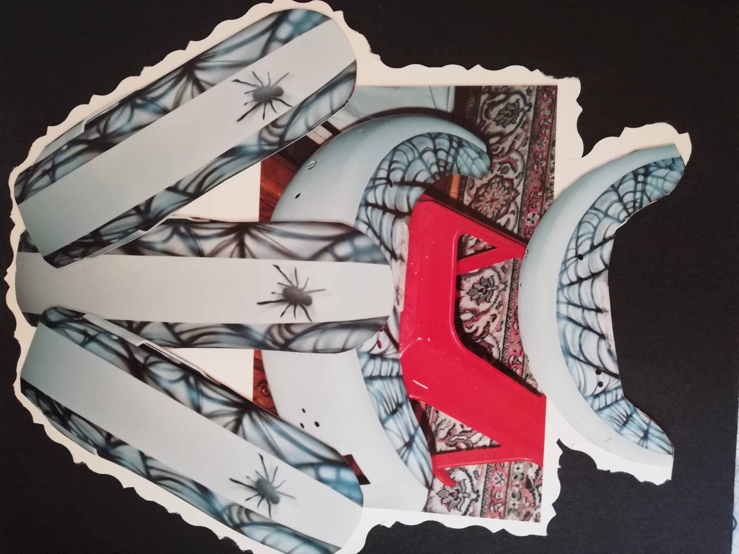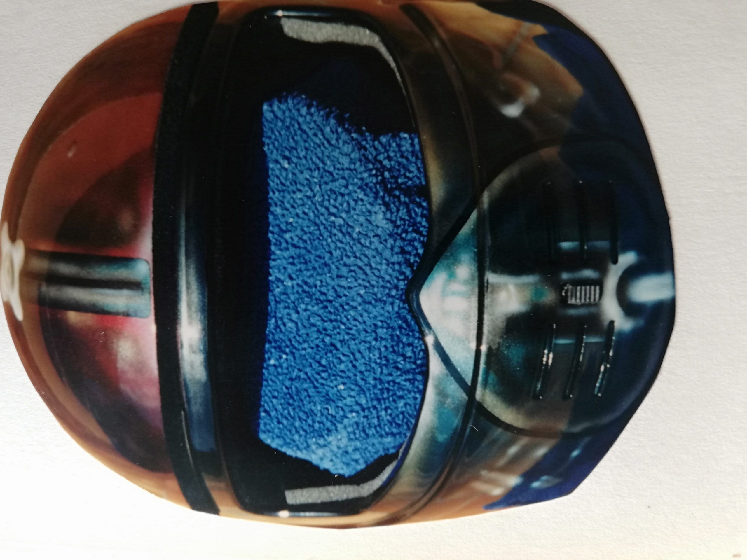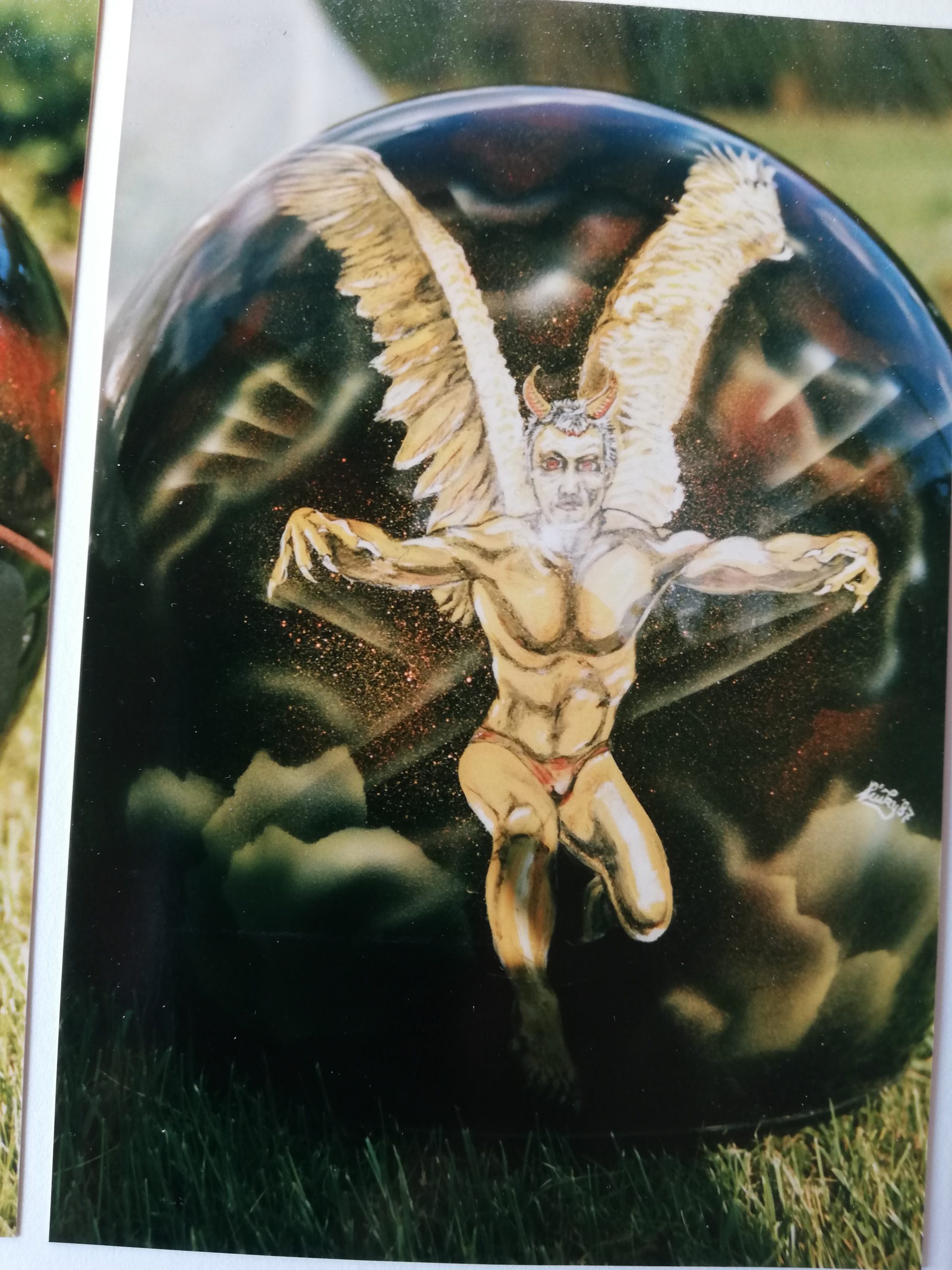Ein metallgefertigter Motorradtank erscheint mit umbra-brauner Äderung durchzogen mit elfenbeinfarbenem Background als Marmordesign, … oder der Beiwagen eines Kraftrades, aus Epoxid gefertigt, erscheint im alten Kleid der „Tante Ju“ mit Drucknieten versehen in einem geschruppten Aludesign.