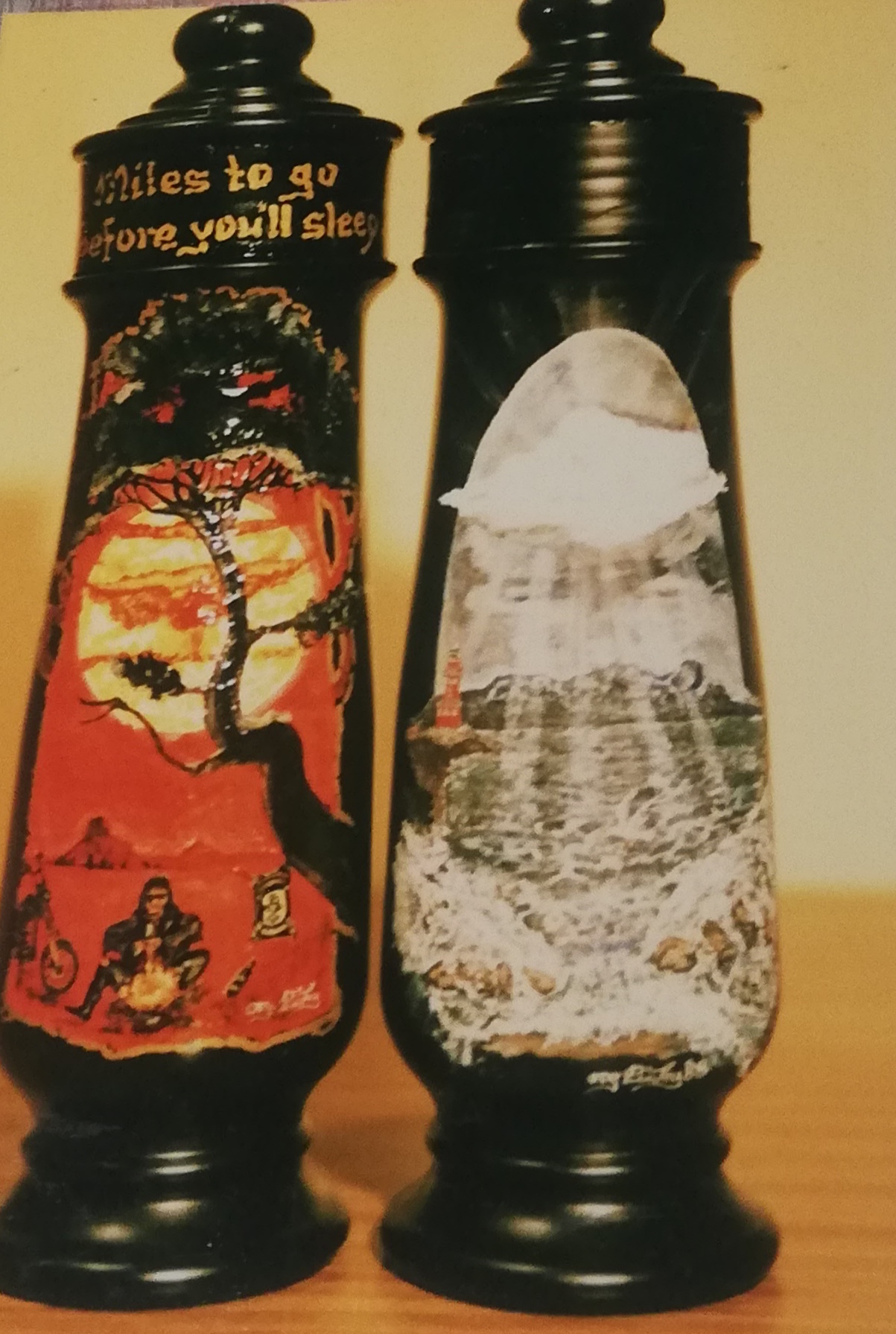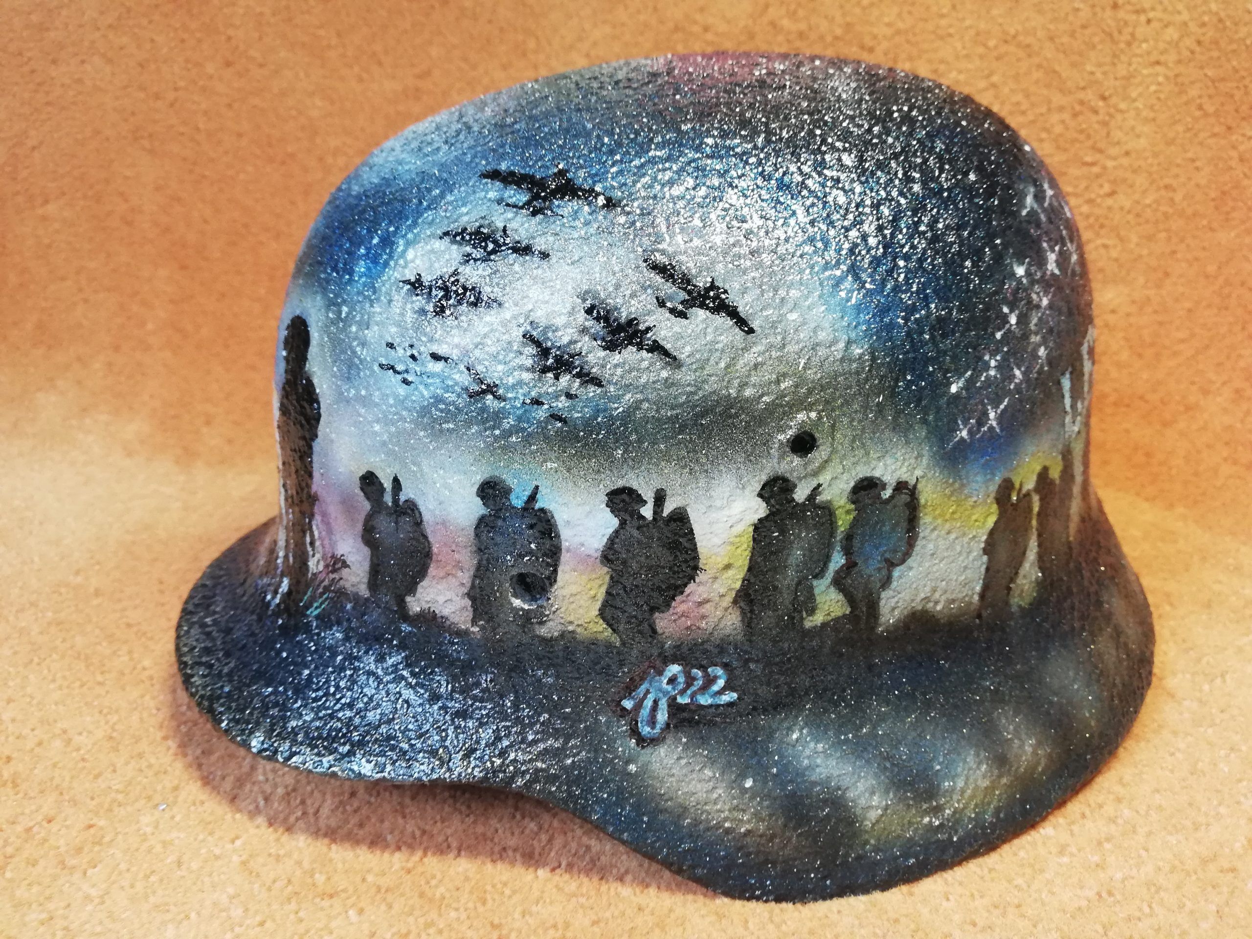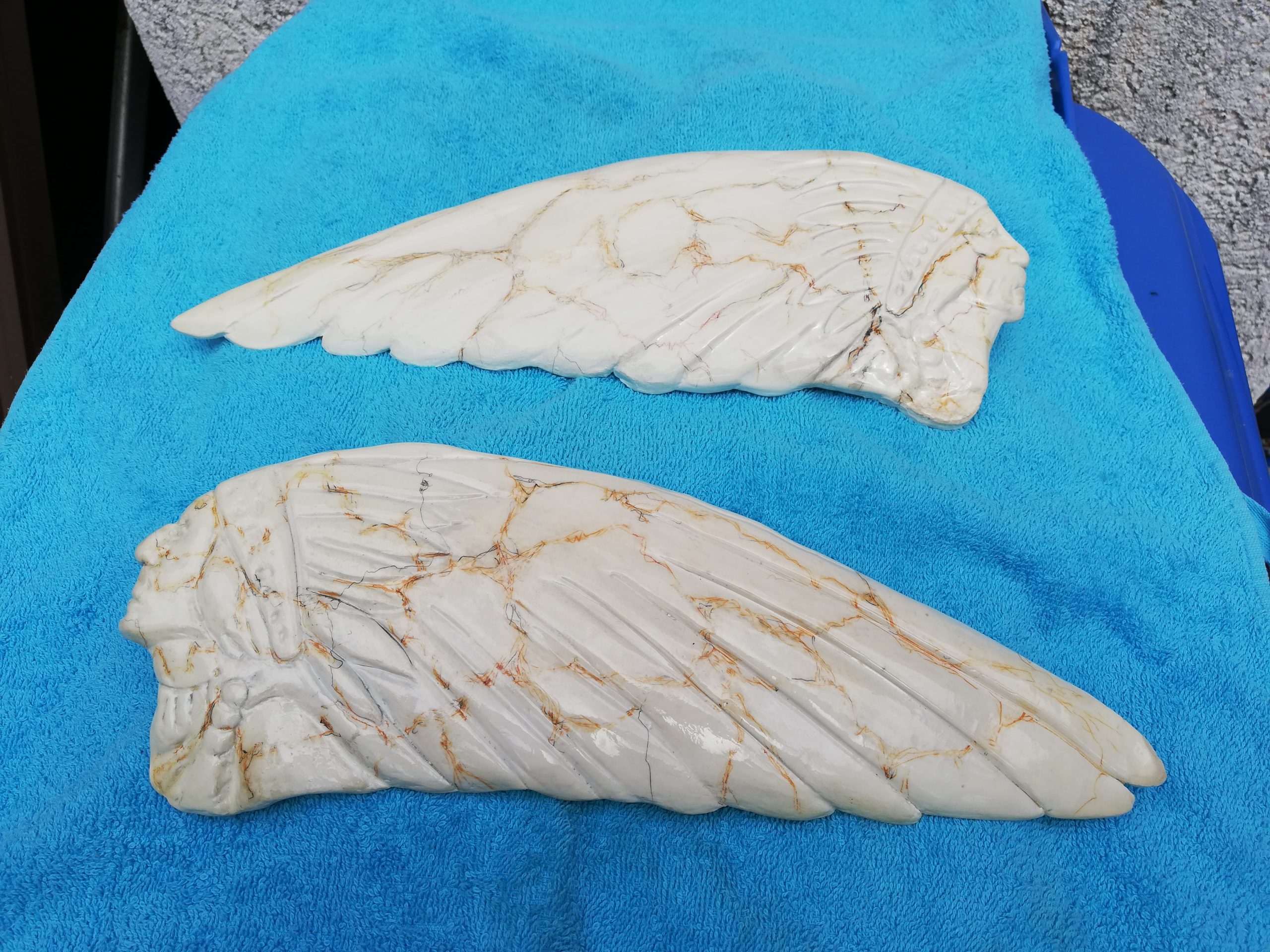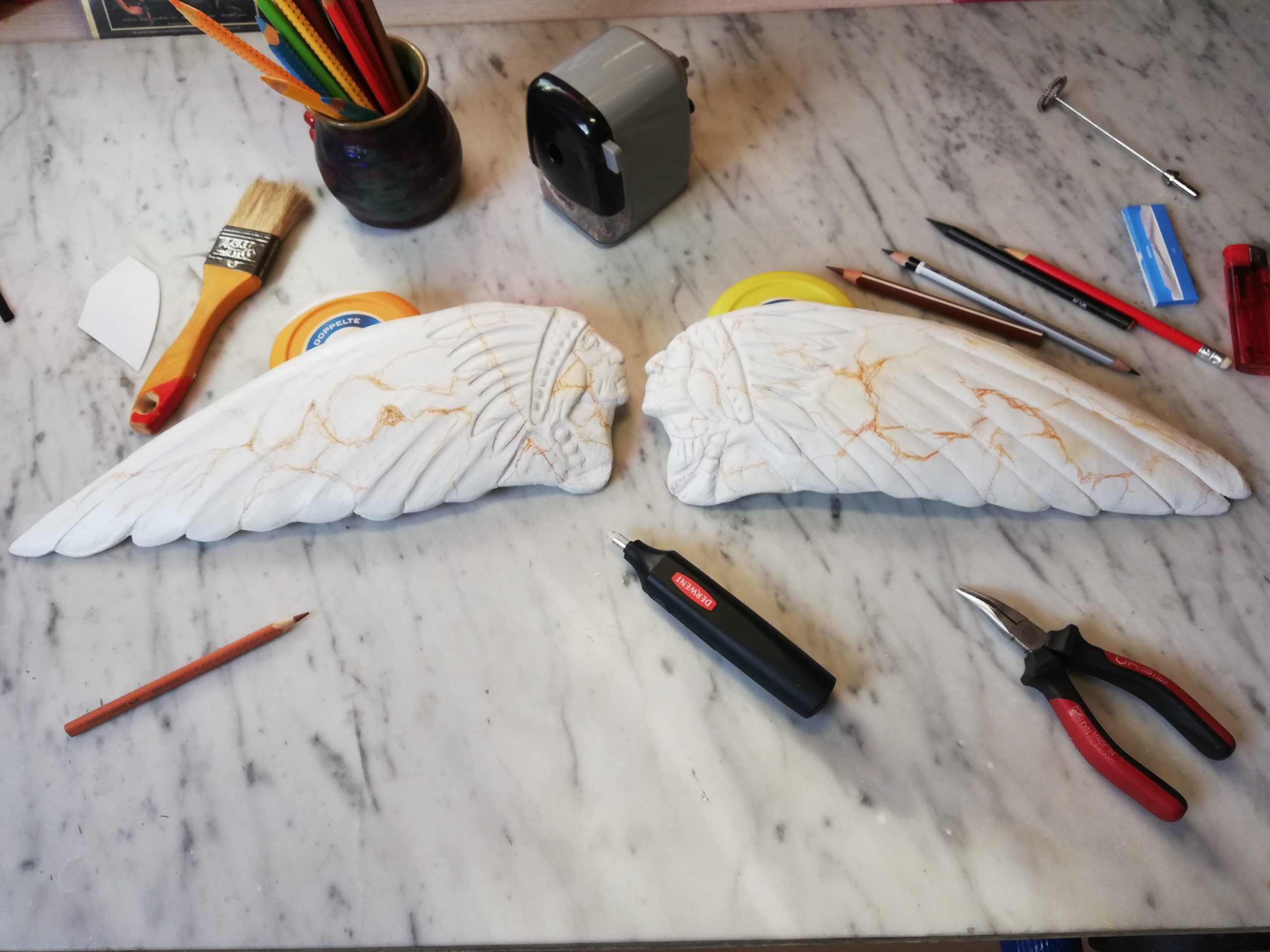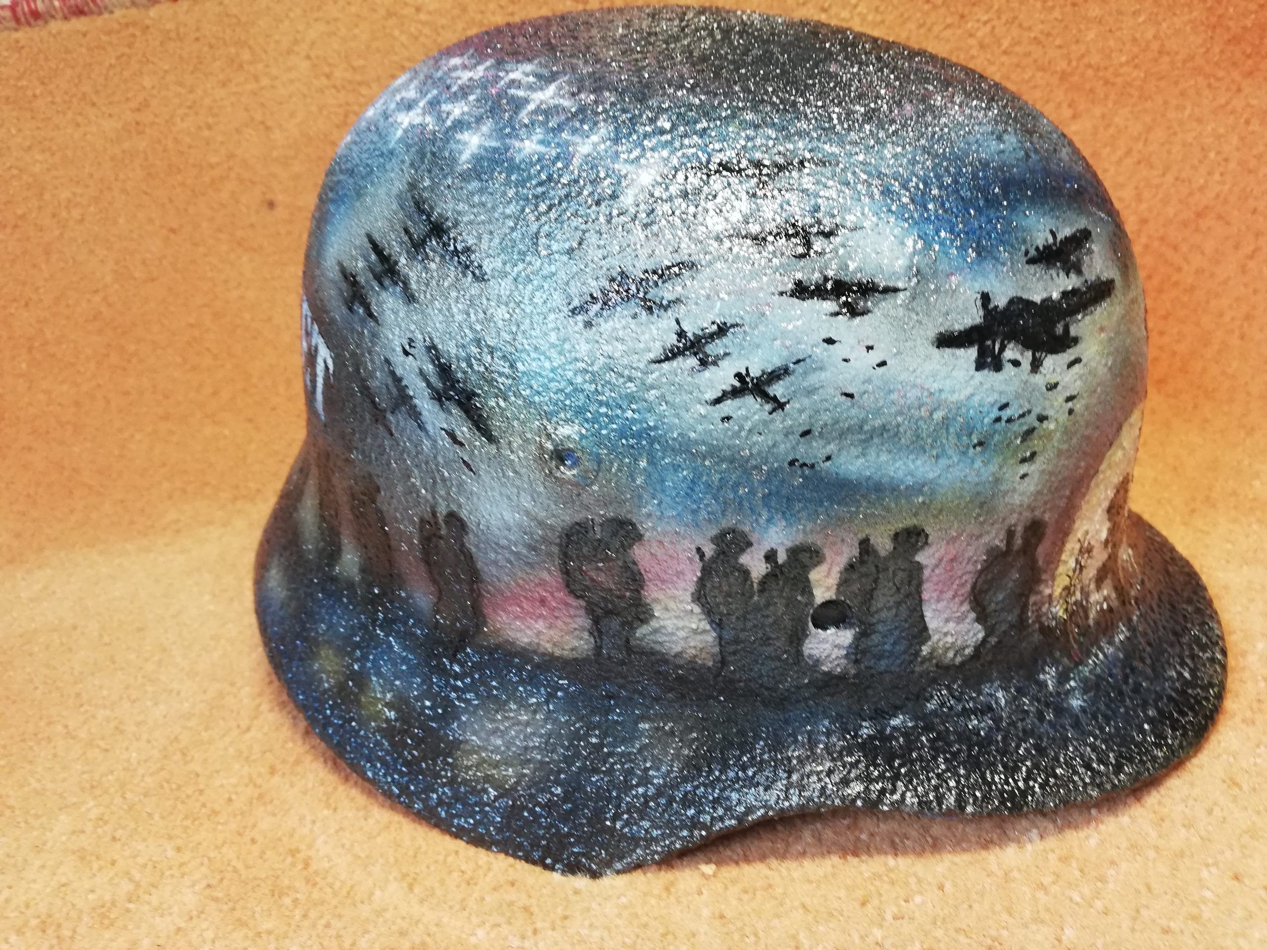 Ein metallgefertigter Motorradtank erscheint mit umbra-brauner Äderung durchzogen mit elfenbeinfarbenem Background als Marmordesign, … oder der Beiwagen eines Kraftrades, aus Epoxid gefertigt, erscheint im alten Kleid der „Tante Ju“ mit Drucknieten versehen in einem geschruppten Aludesign.