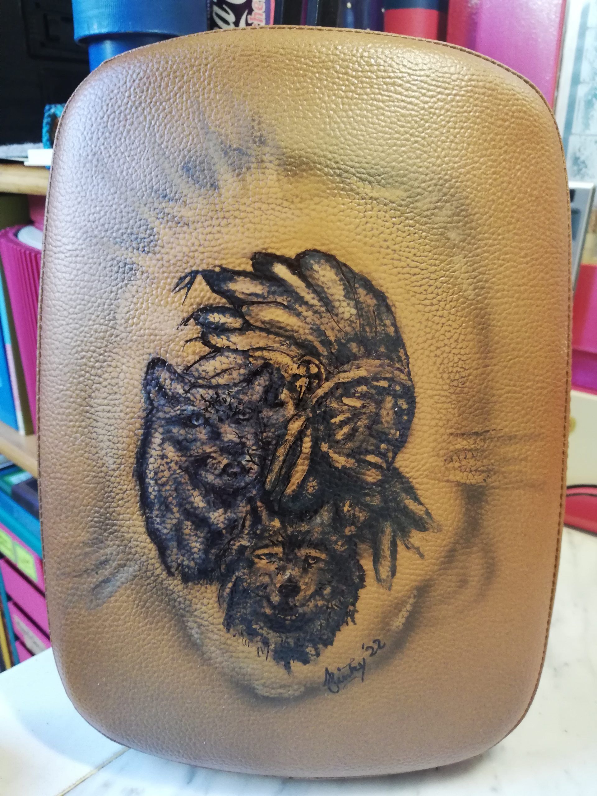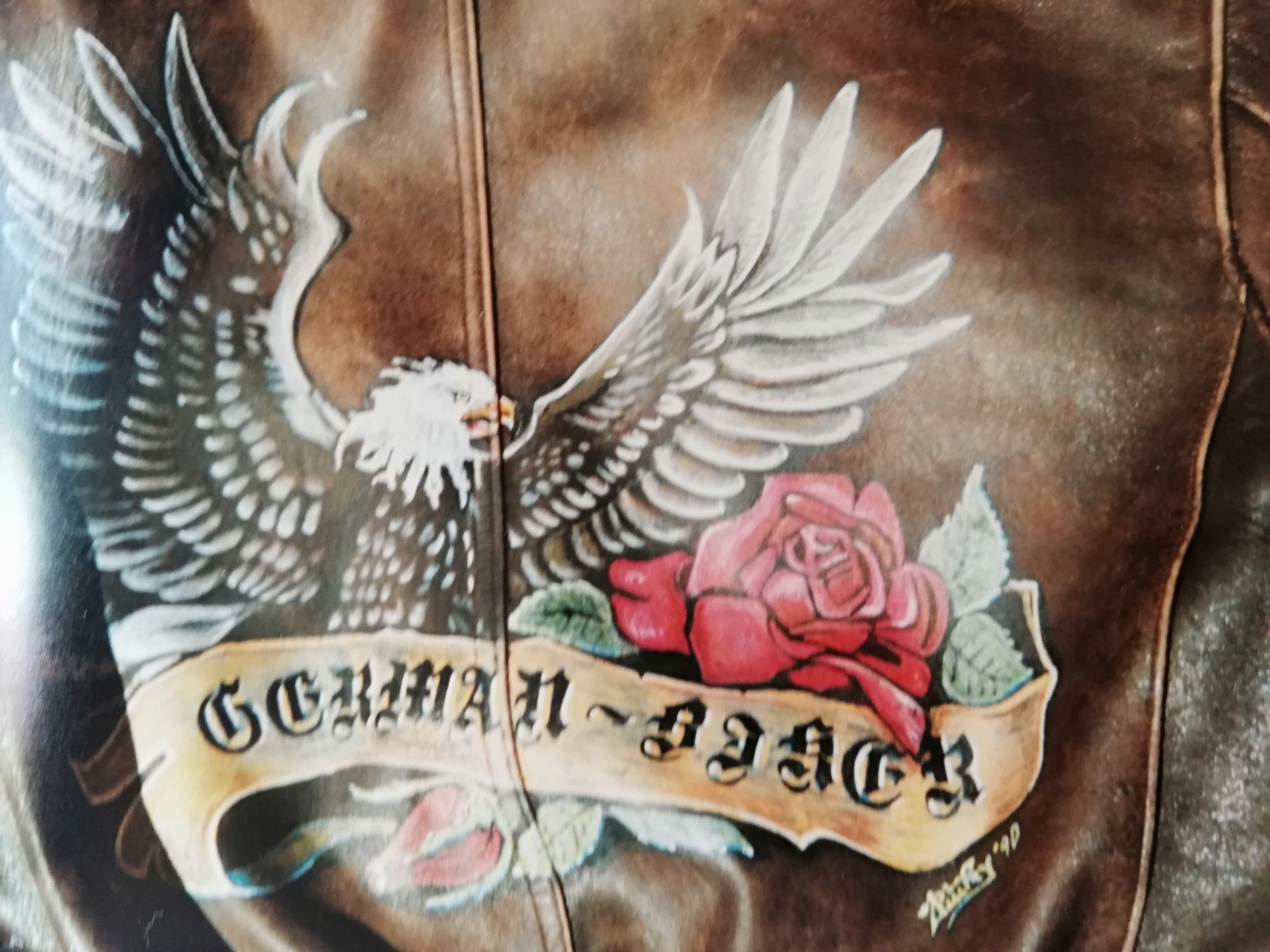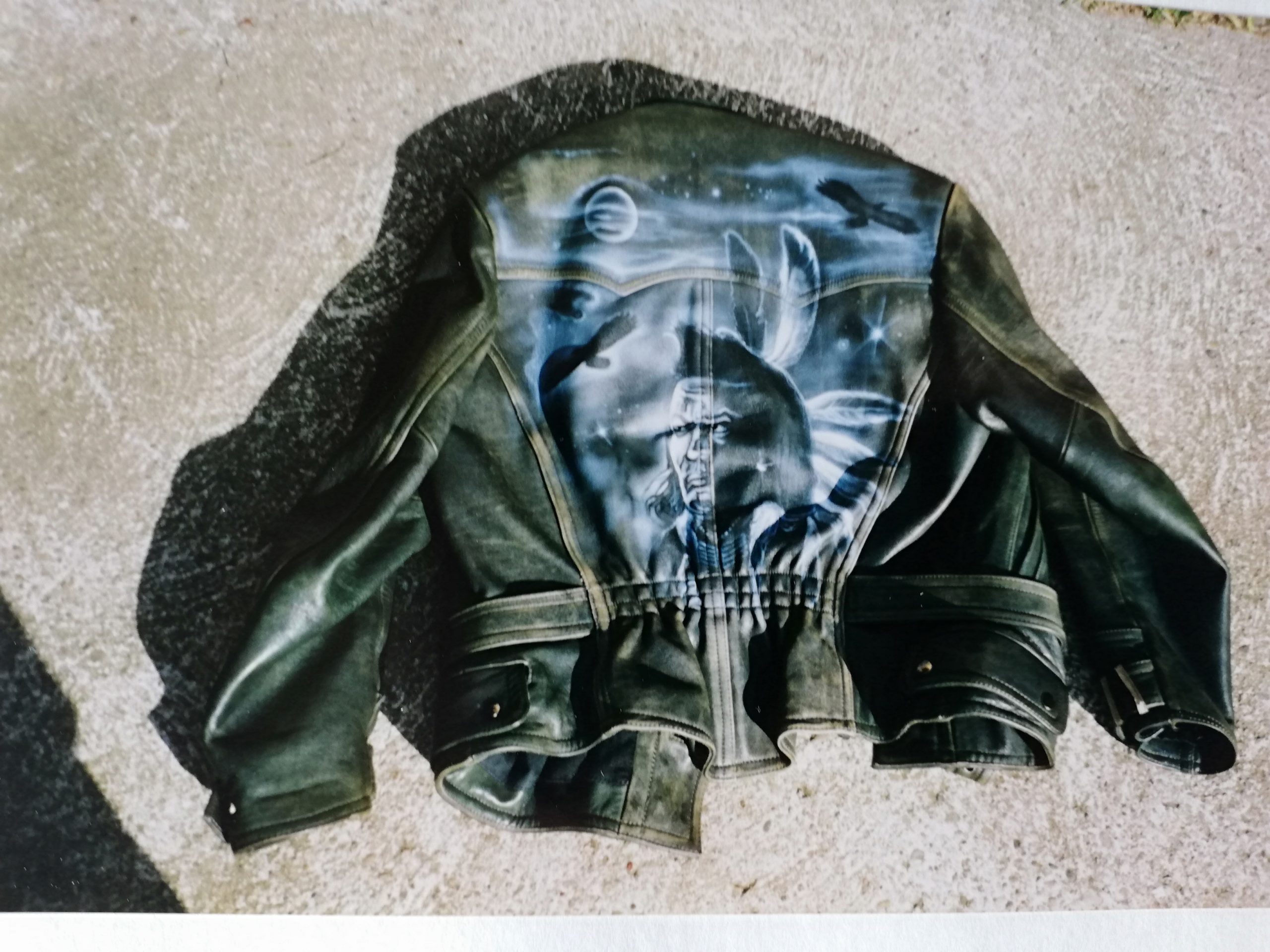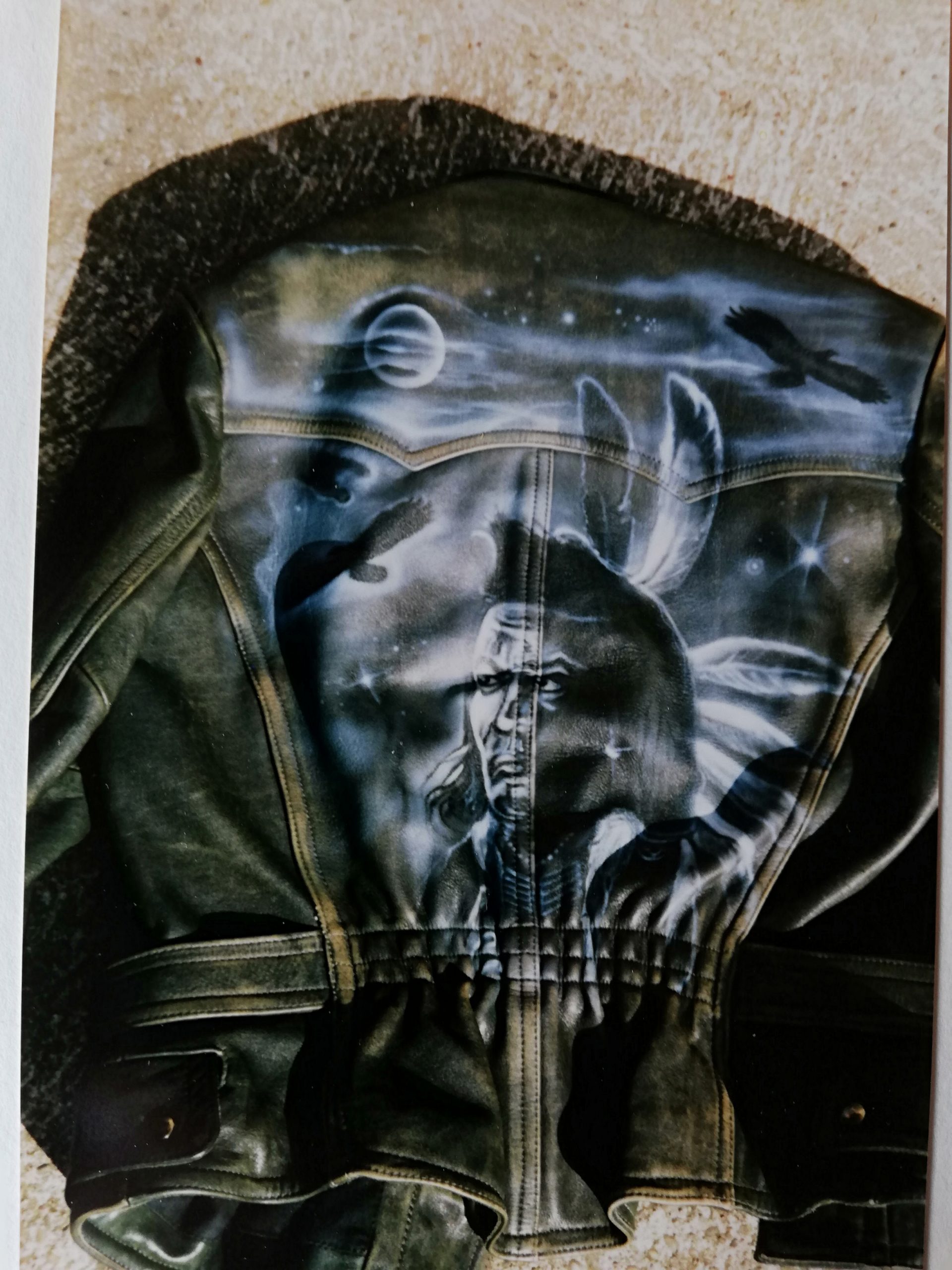 Airbrush auf Leder, Jacken, 2-Radsitze, Mobiliar (Sessel, Schränke …)