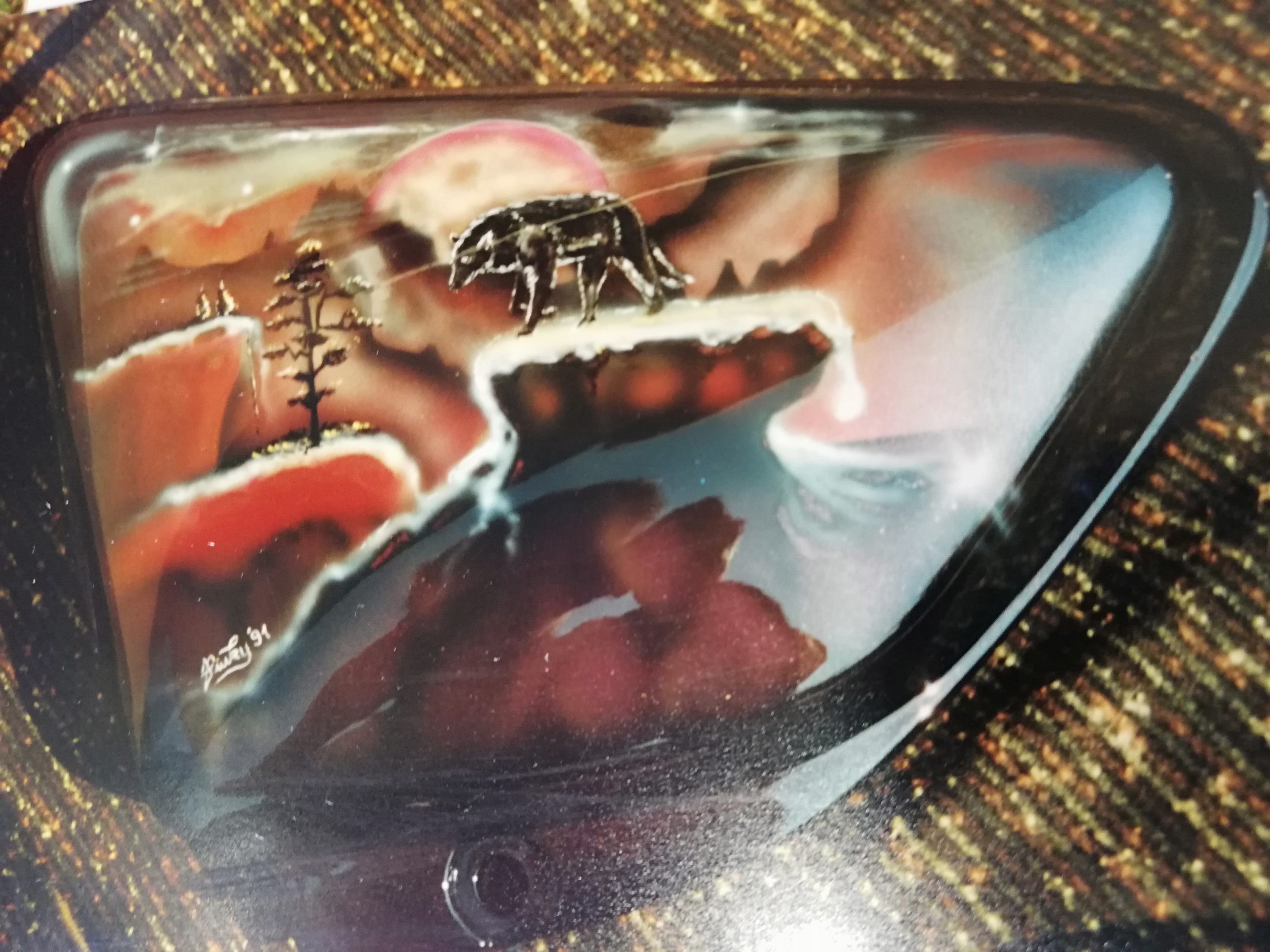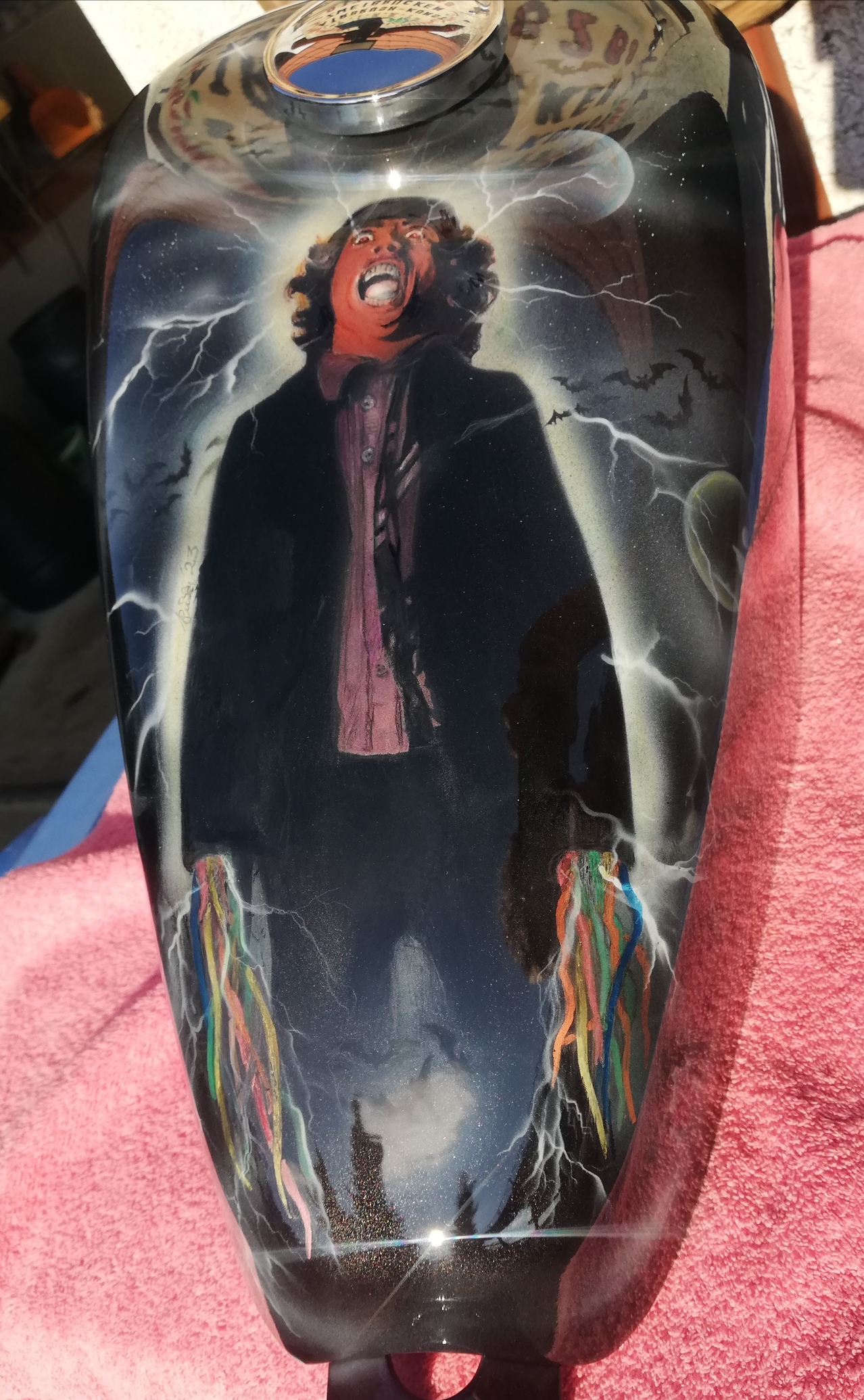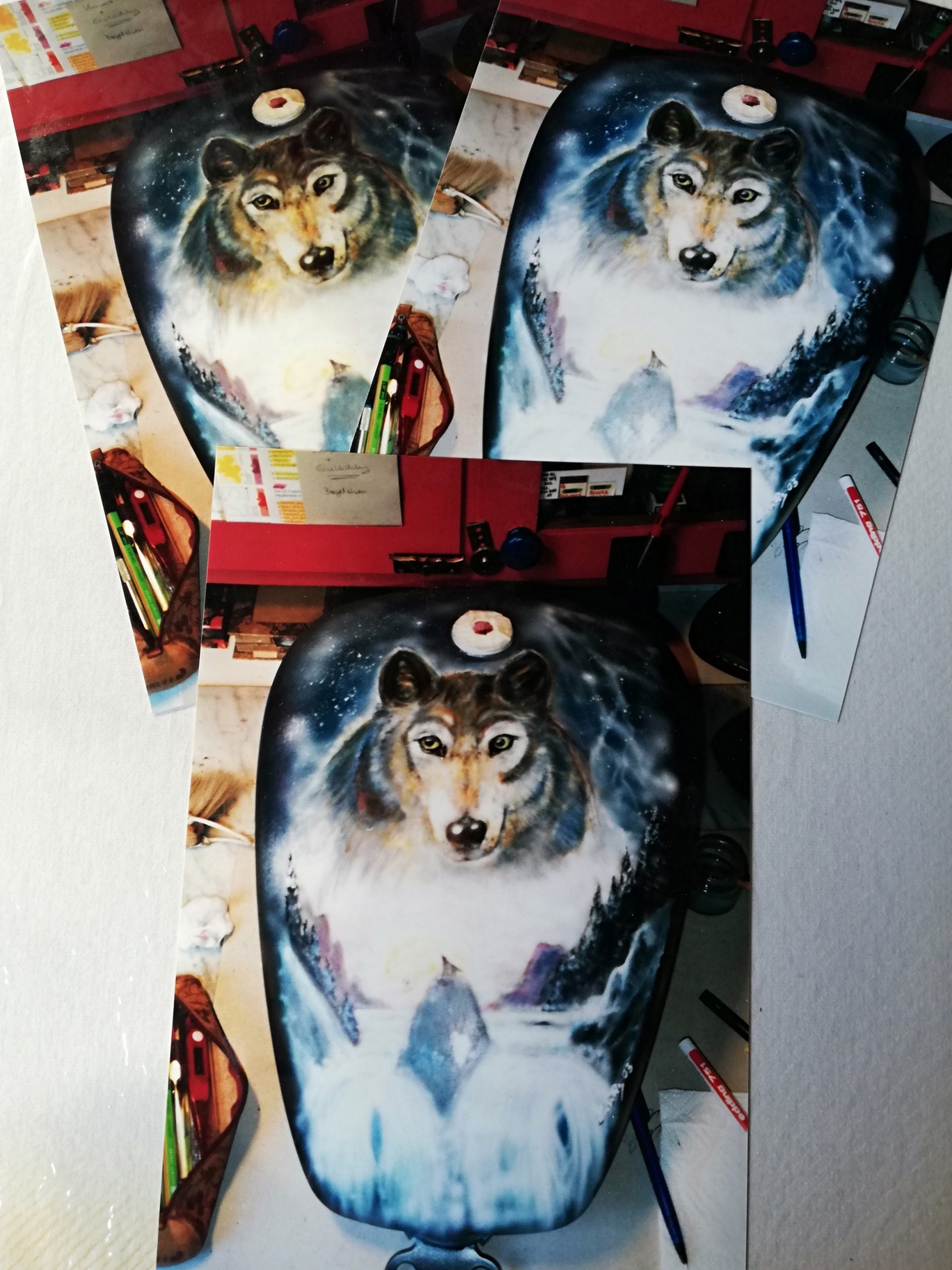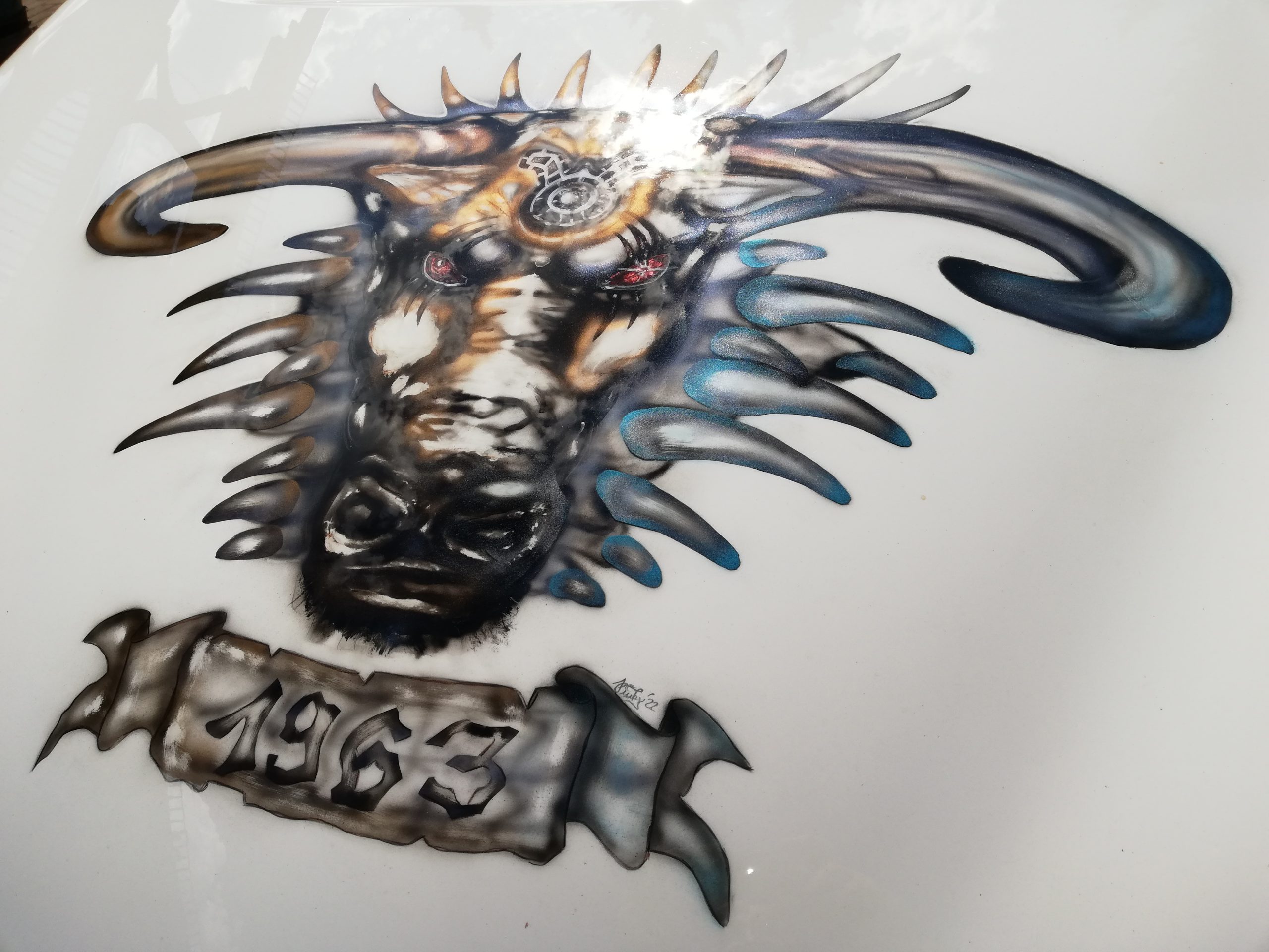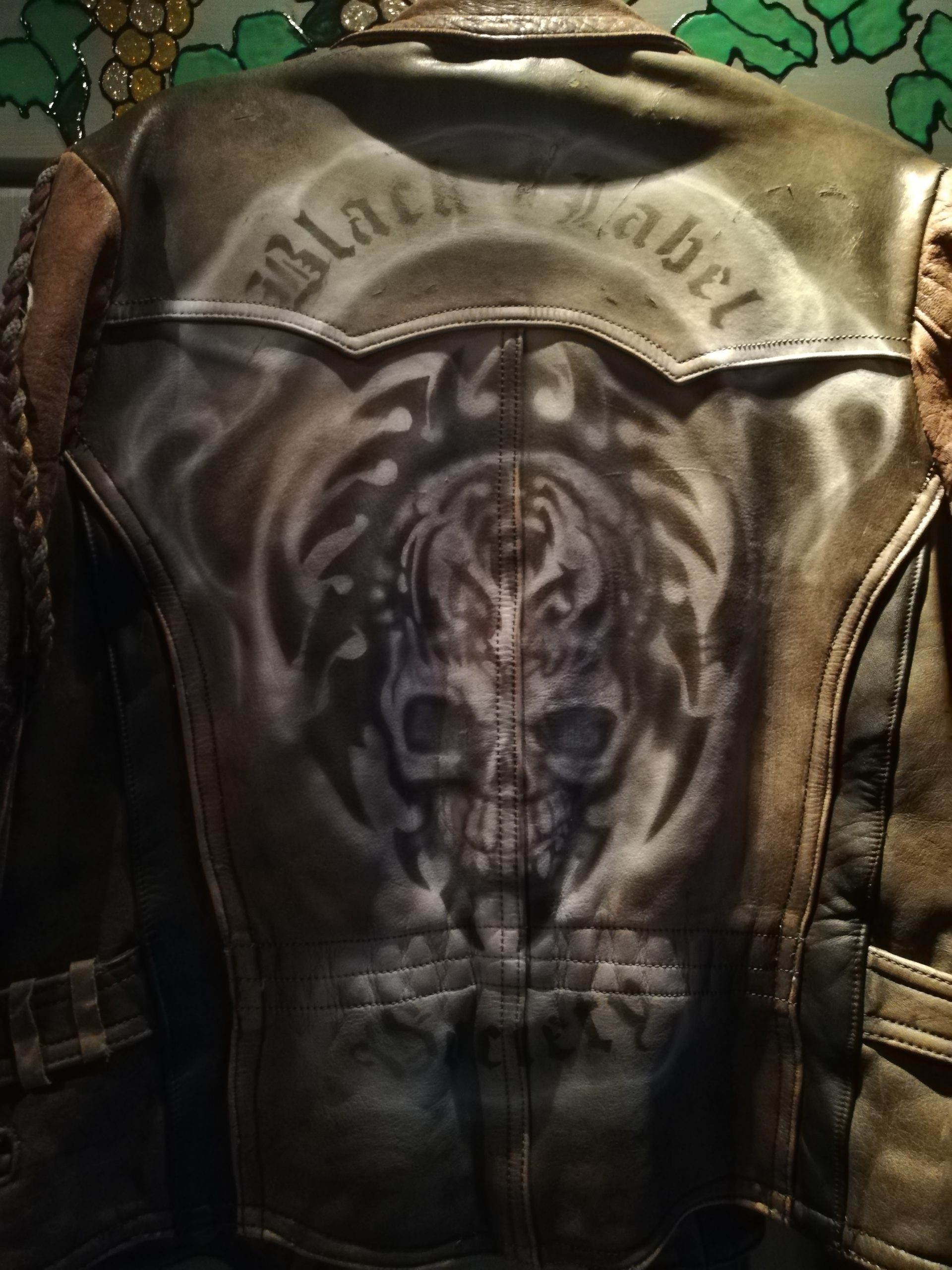 Airbrush auf Leder, Jacken, 2-Radsitze, Mobiliar (Sessel, Schränke …)